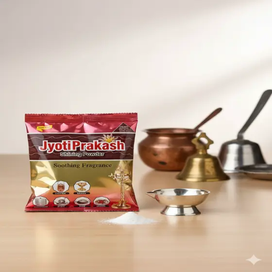 Keep your metals sparkling with Jyoti Prakash Shining Powder, the ultimate metal polish for copper, brass, aluminium, silver, and steel. Ideal for utensils, pooja thalis, brass diyas, silver ornaments, and decorative antiques, this trusted polish restores brilliance, removes tarnish, oxidation, and stubborn stains quickly, and extends the life of your household and religious items. Families across India rely on this powder for festive cleaning and daily upkeep.